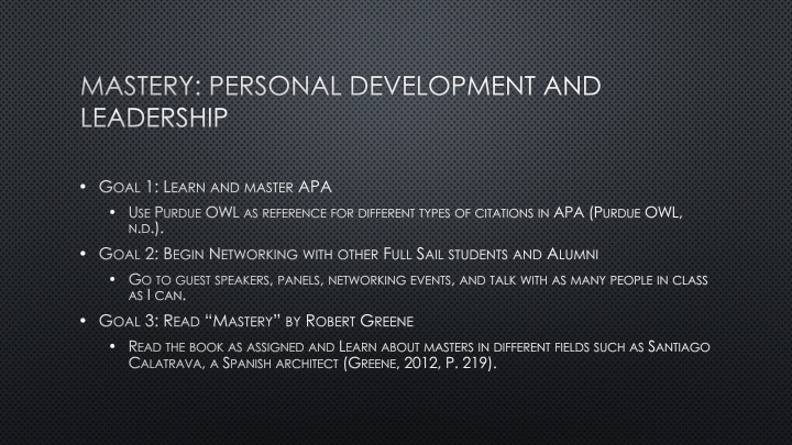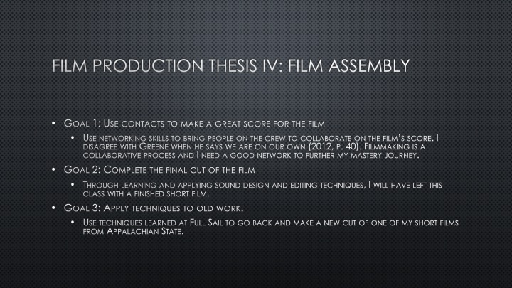 This page is dedicated to showing my goals for each of my courses at Full Sail University and how I hope to accomplish each goal.